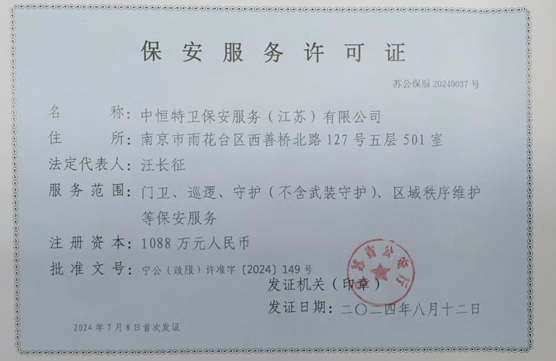 Copyright © 中恒特卫保安服务(江苏)有限公司 All Rights Reserved 苏ICP备2024126564号 技术支持:鑫泽科技