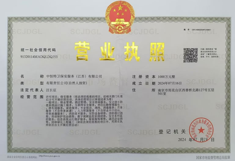 中恒特卫保安服务(江苏)有限公司